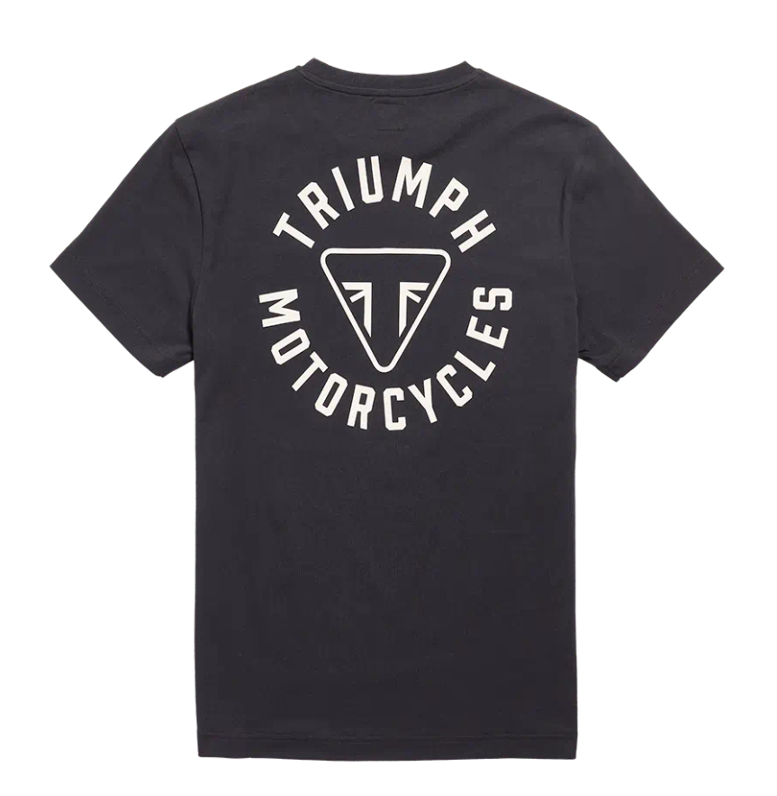 100% katoenen shirt met op de voorkant in het klein het Triumph logo op een borstzak. Op de achterkant staat het grotere Triumph logo.